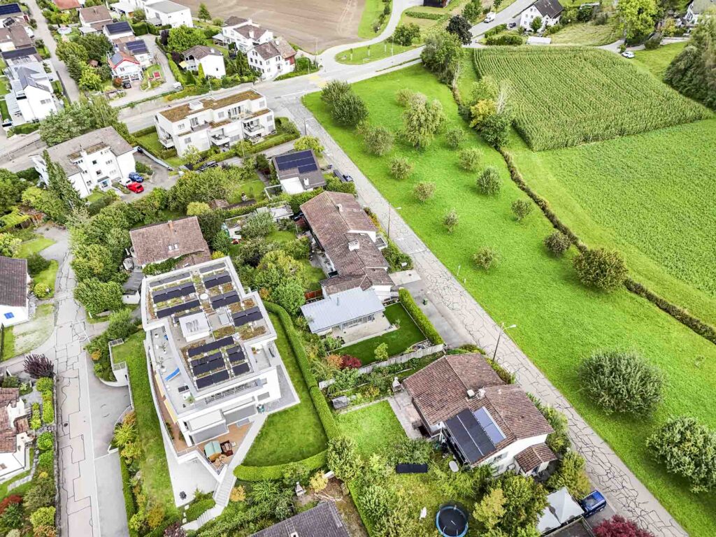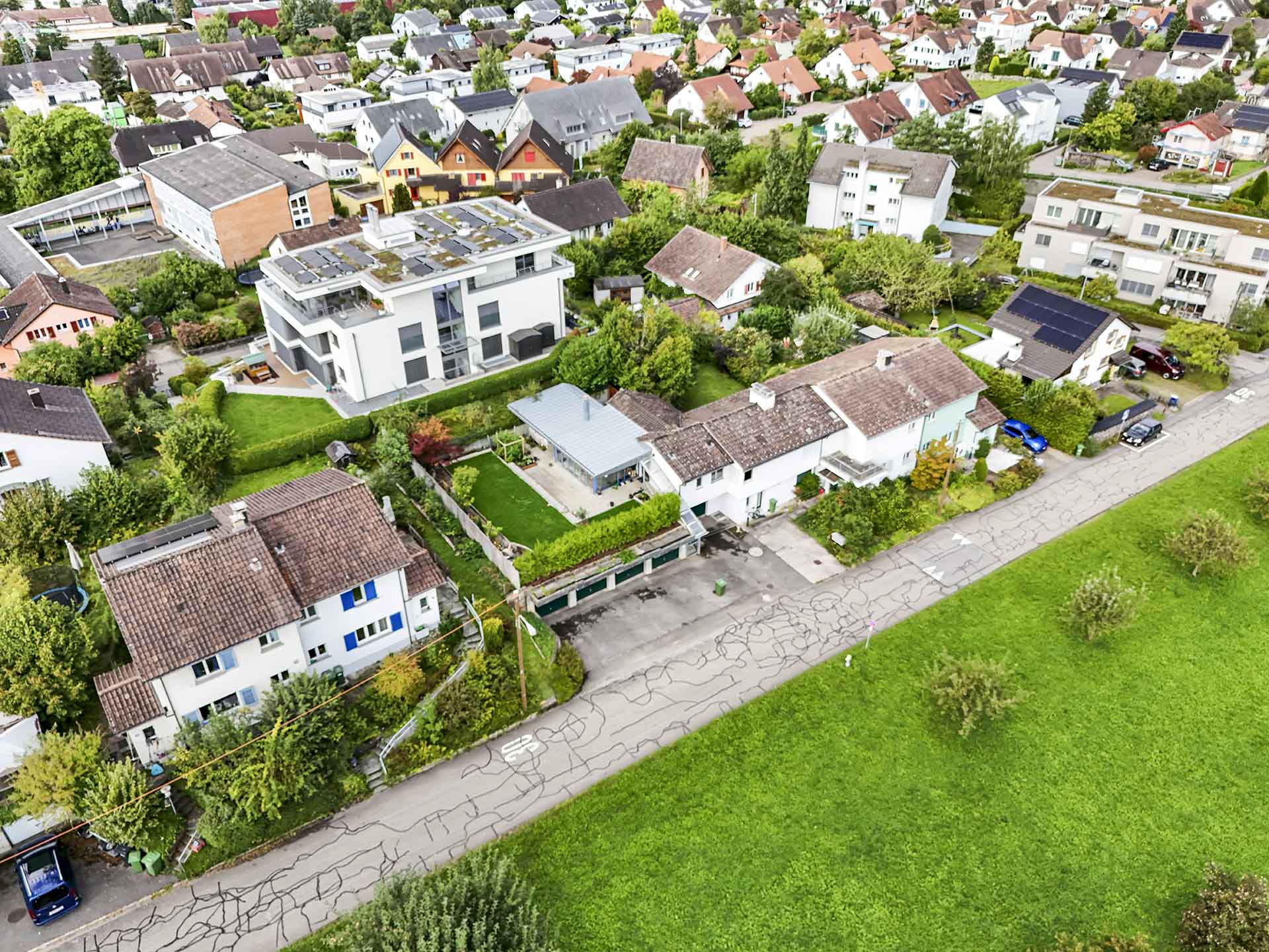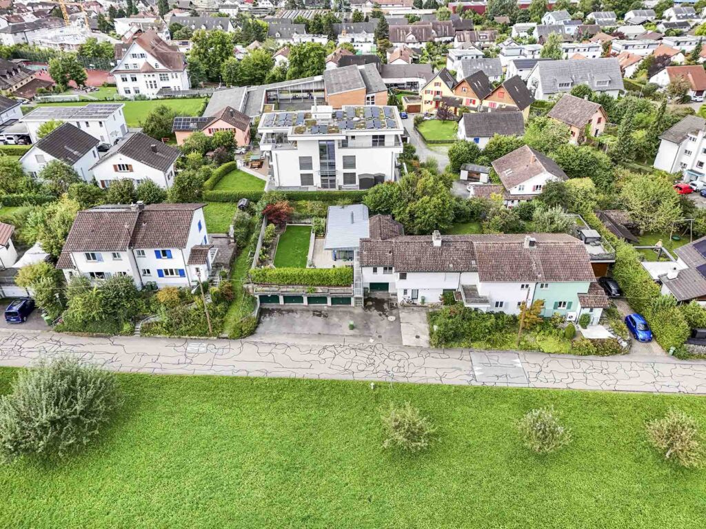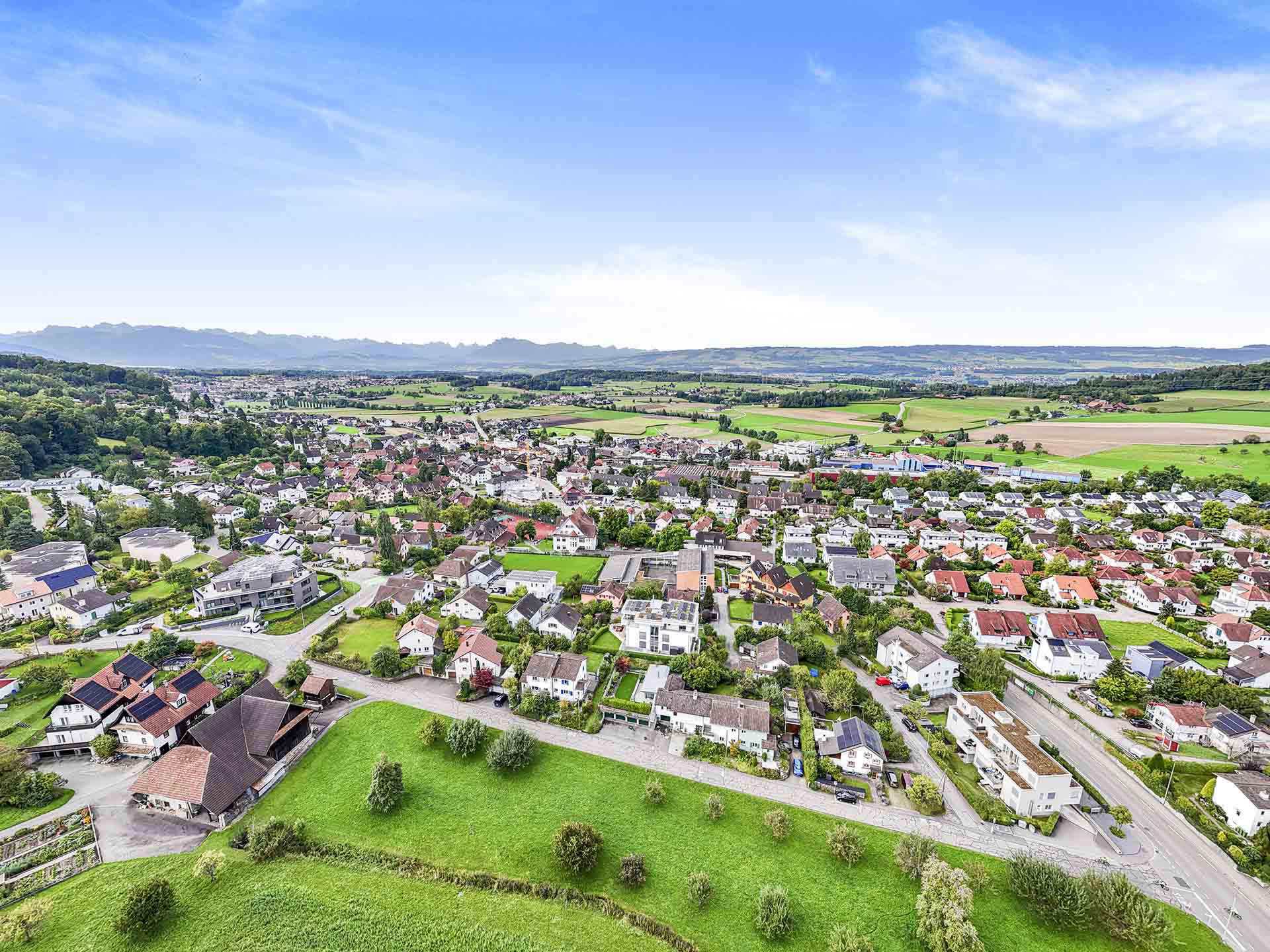 Die Lage überzeugt gleich doppelt – im Mikroumfeld durch das ruhige Wohnquartier in Gehdistanz zu Bahnhof, Zentrum und Schulen, und im Makroumfeld durch die schnelle Erreichbarkeit von Zürich in nur etwa 20 Fahrminuten.