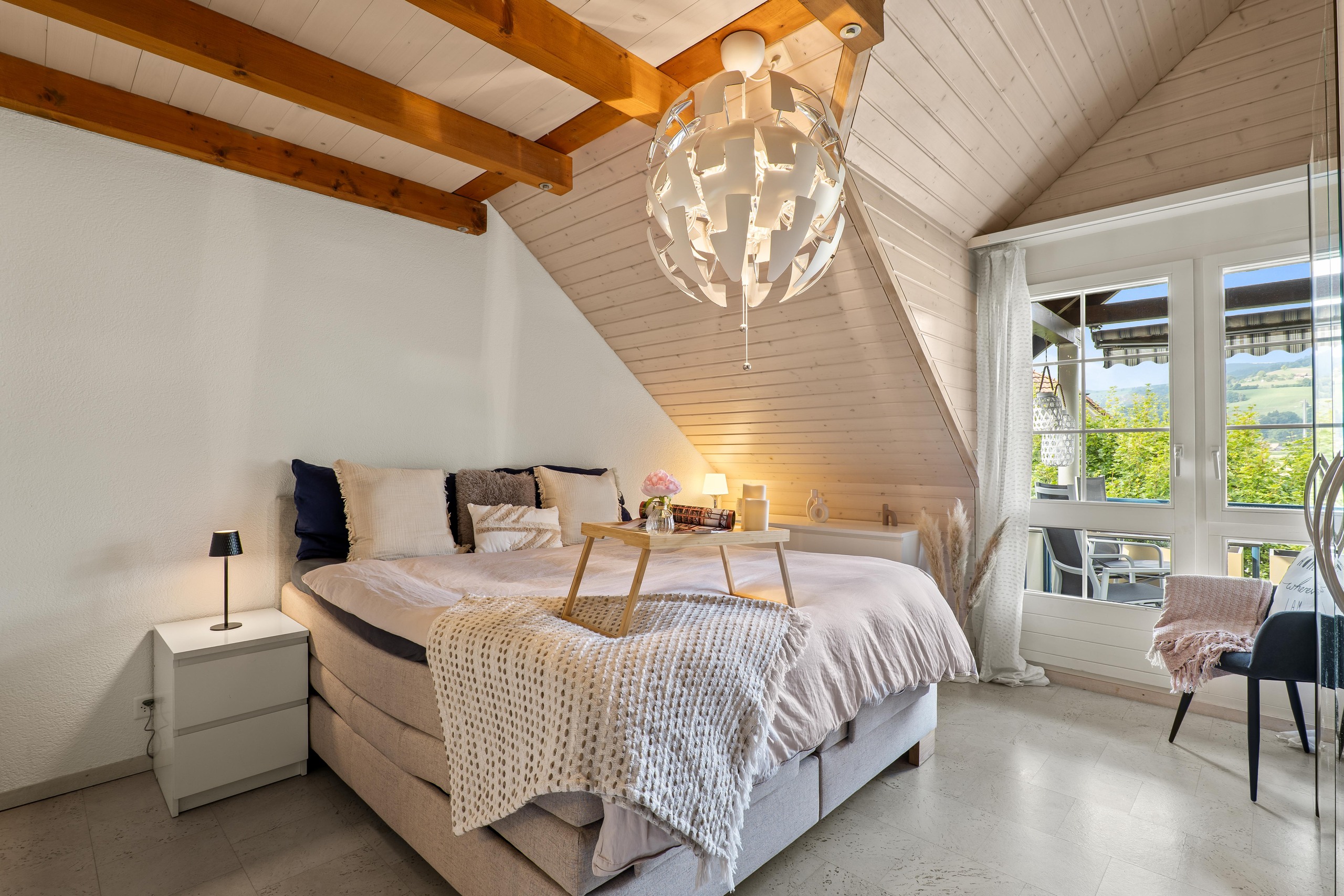 An ländlicher Lage im beliebten Seftigen verkaufen wir eine charmante und gepflegte 5.5-Zimmer-Dachwohnung mit Galerie. Die Wohnung überzeugt durch Grosszügigkeit, gemütliche Atmosphäre und eine fantastische Aussicht auf die Natur und die Berge.