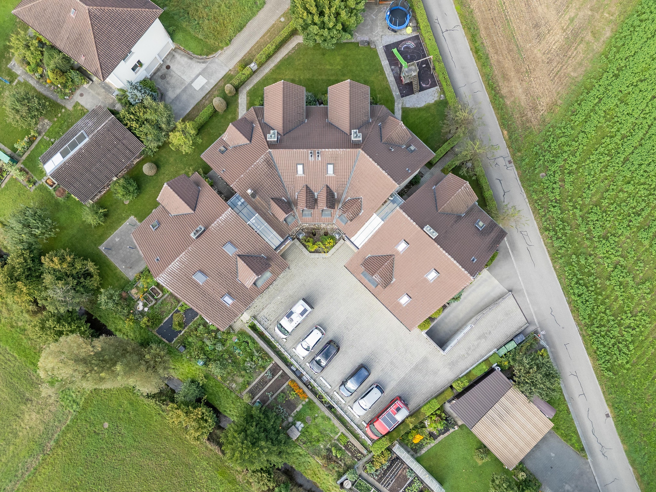 Die familienfreundliche Überbauung verfügt unter anderem über einen Spielplatz und überzeugt durch ihre naturnahe Lage. Ein Einstellhallenplatz kann zusätzlich erworben werden.
