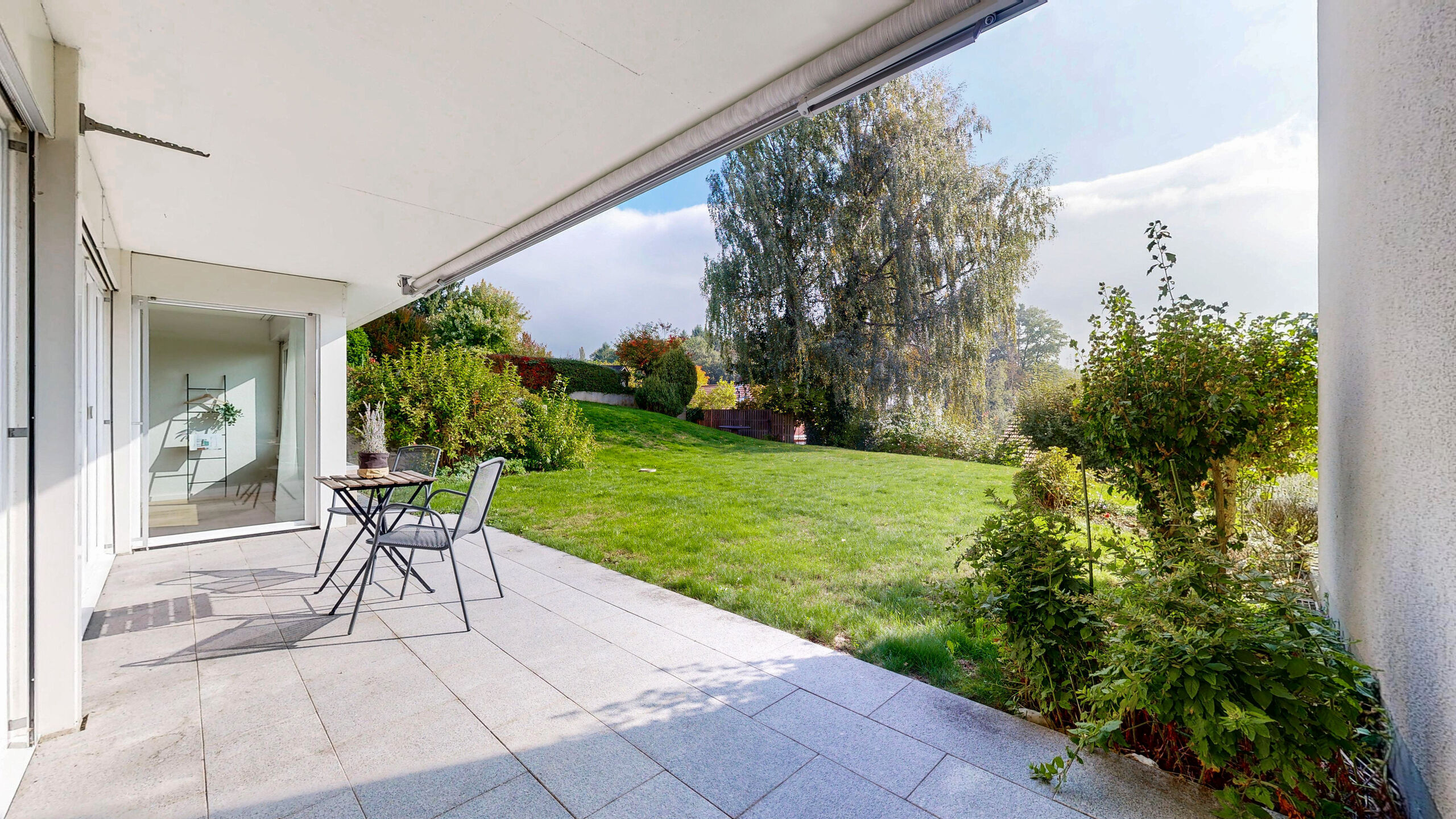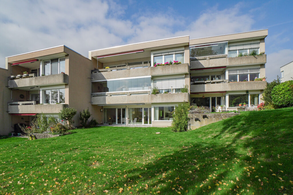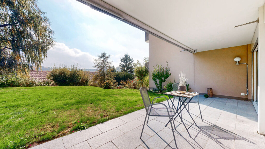 Im Aussenbereich geniessen Sie einen geräumigen, gedeckten Gartensitzplatz mit anschliessender Rasenfläche im Sonderrecht – perfekt für gemütliche Sommerabende im Grünen.
