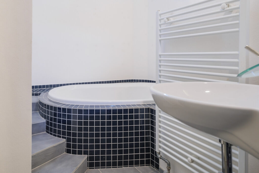 - Komfort: Whirlpool als besonderes Highlight, ergänzt durch Dusche und zwei WC