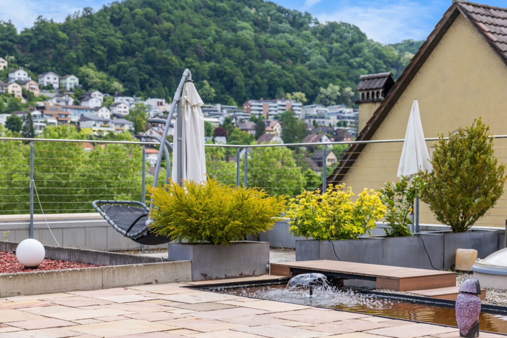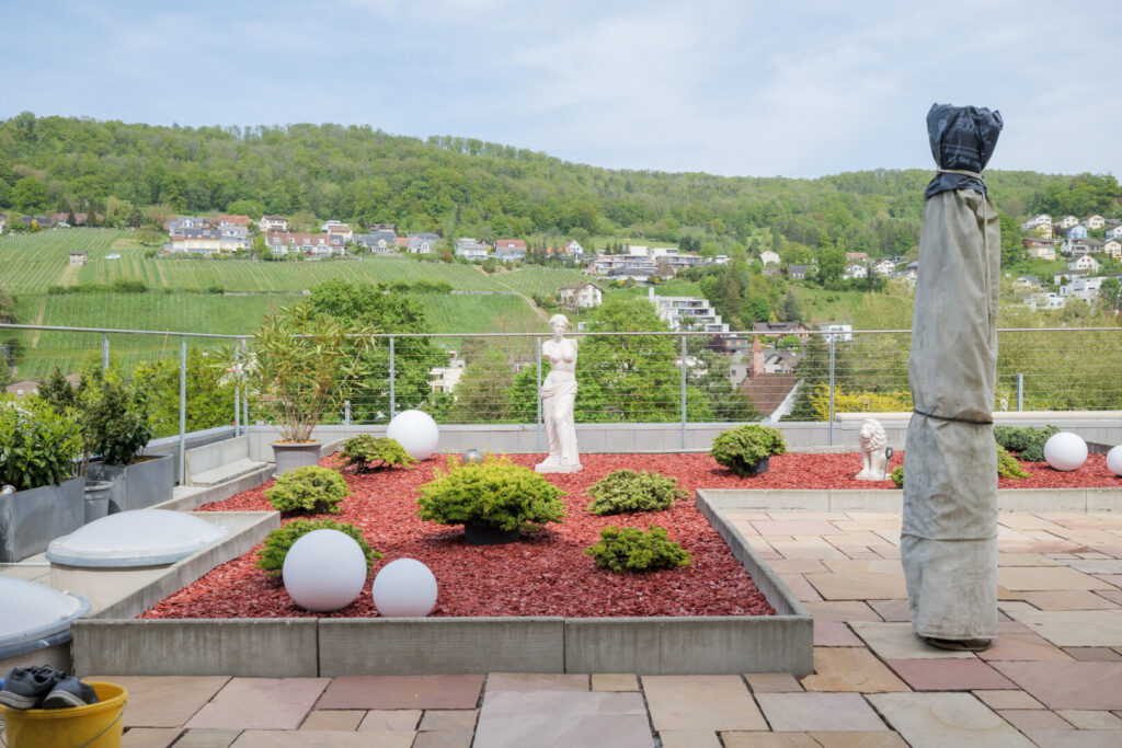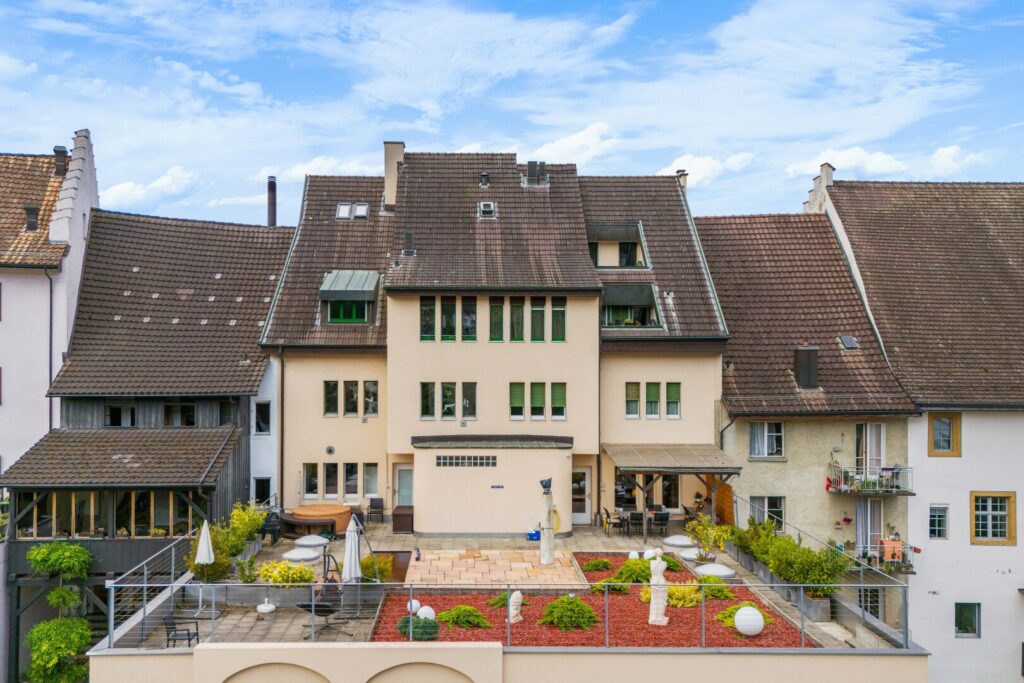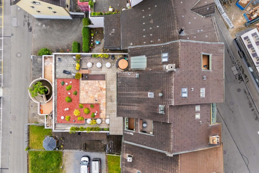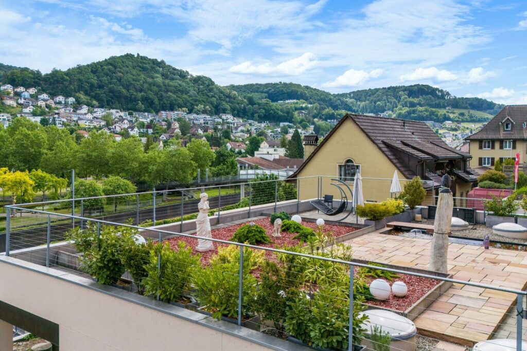Ein absolutes Highlight ist die riesige Terrasse mit 217 m² – ein Freiraum mit Weitblick, der von zwei Seiten zugänglich ist und unzählige Möglichkeiten bietet. Praktische Nebenräume wie ein eigener Keller und eine eigene Waschküche runden das Angebot ab. Zwei Einstellhallenplätze können zusätzlich erworben werden.