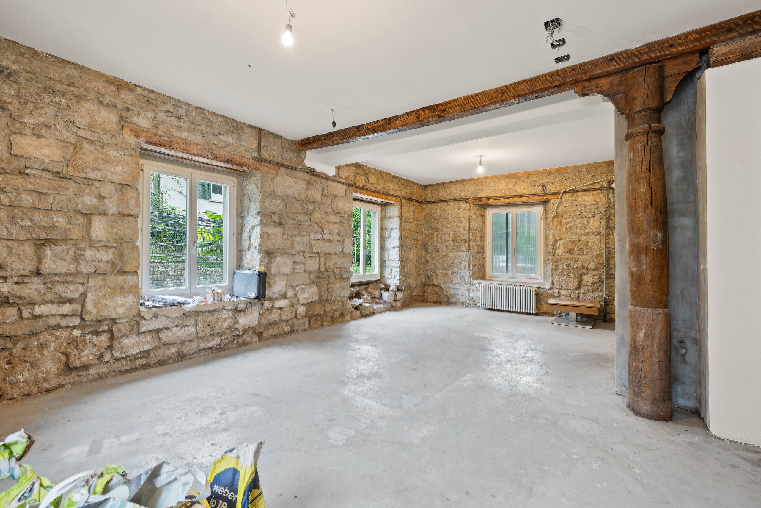• Zustand: Die Sanierung im Obergeschoss ist abgeschlossen, das Erd- und Dachgeschoss befinden sich zu grossen Teilen im Rohbau, ideal um die eigenen Ideen zu verwirklichen