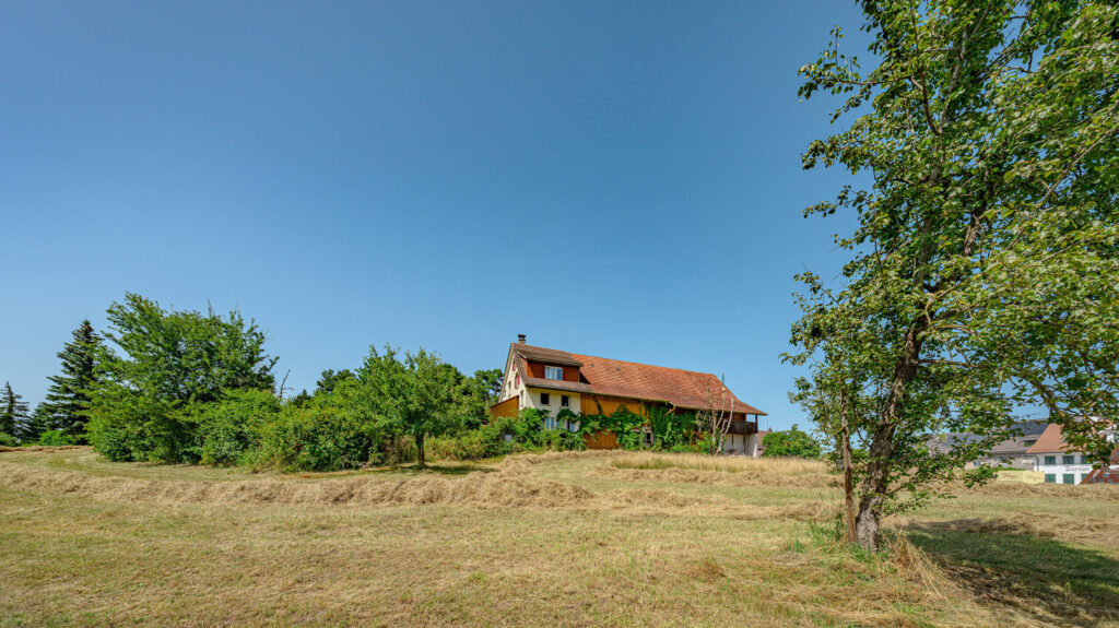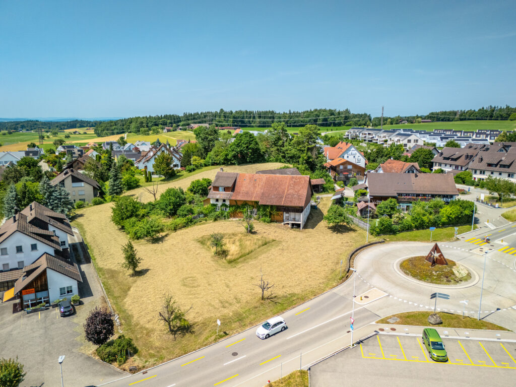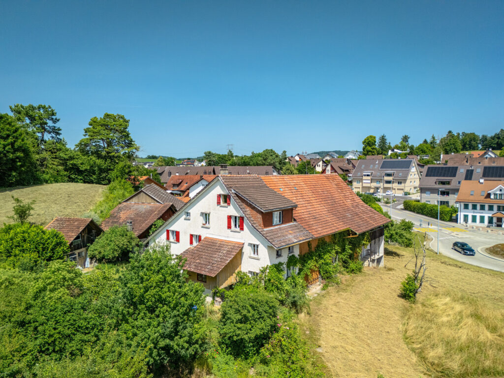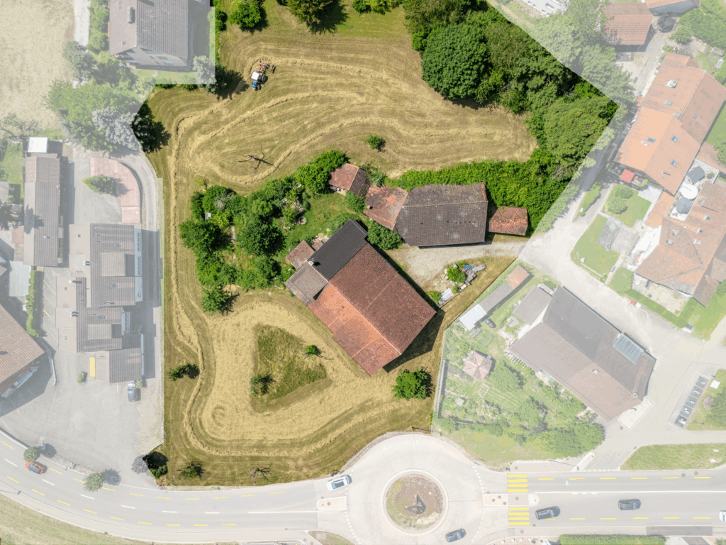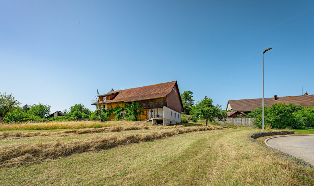 Das Grundstück ist heute mit einem Bauernhaus und einem zusätzlichen Ökonomiegebäude bebaut. Es teilt sich auf in 3’965 m² Kernzone 1 sowie 2’128 m² Kernzone 2. In der Kernzone 1 gilt keine Ausnutzungsziffer, während in der Kernzone 2 eine Ausnutzungsziffer von 0,50 massgebend ist. Das gesamte Areal liegt im Ortsbildschutzgebiet, was eine besonders sorgfältige architektonische Gestaltung erfordert. Erlaubt sind je zwei Vollgeschosse und zwei Dachgeschosse, was vielfältige Spielräume für eine zukunftsgerichtete Überbauung eröffnet.