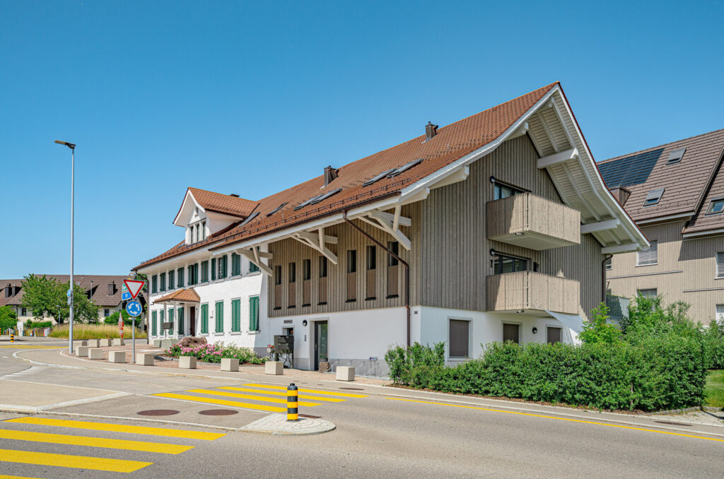 Das Grundstück ist heute mit einem Bauernhaus und einem zusätzlichen Ökonomiegebäude bebaut. Es teilt sich auf in 3’965 m² Kernzone 1 sowie 2’128 m² Kernzone 2. In der Kernzone 1 gilt keine Ausnutzungsziffer, während in der Kernzone 2 eine Ausnutzungsziffer von 0,50 massgebend ist. Das gesamte Areal liegt im Ortsbildschutzgebiet, was eine besonders sorgfältige architektonische Gestaltung erfordert. Erlaubt sind je zwei Vollgeschosse und zwei Dachgeschosse, was vielfältige Spielräume für eine zukunftsgerichtete Überbauung eröffnet.
