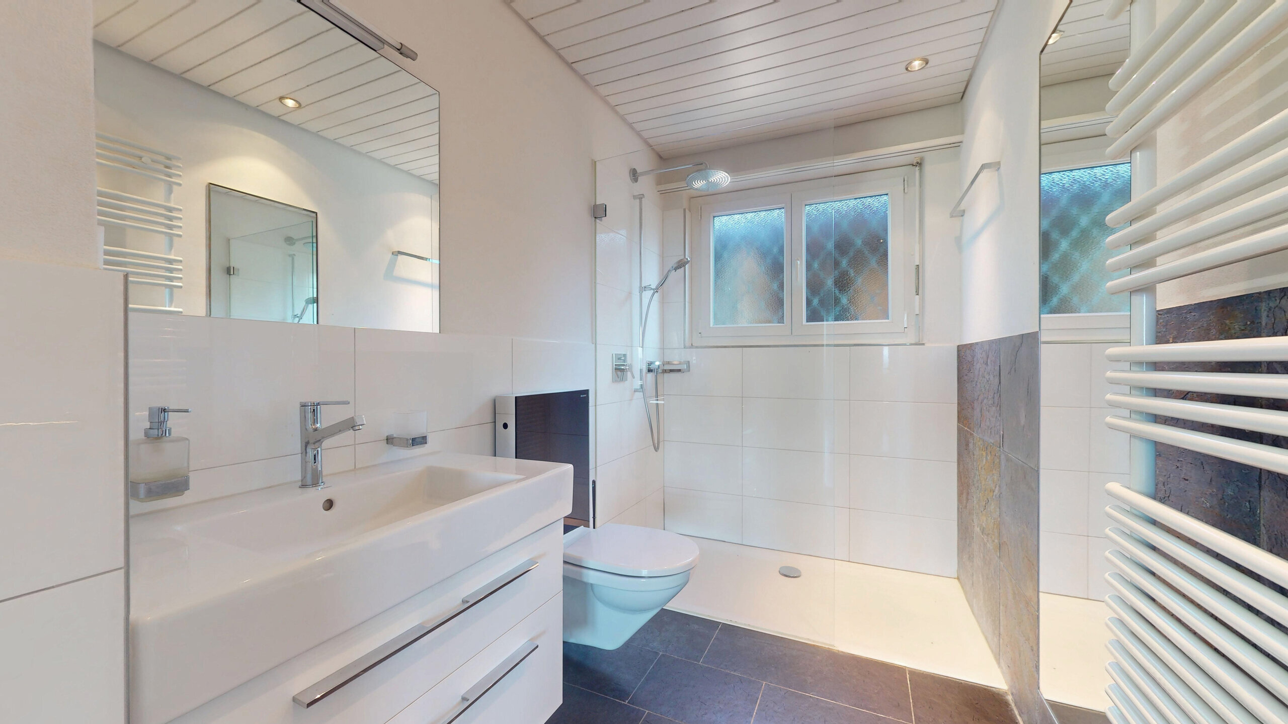 - Nassbereich: Schöner Nassbereich im OG mit Dusche/WC, zusätzliches Gäste- WC sowie Bad/Dusche im EG