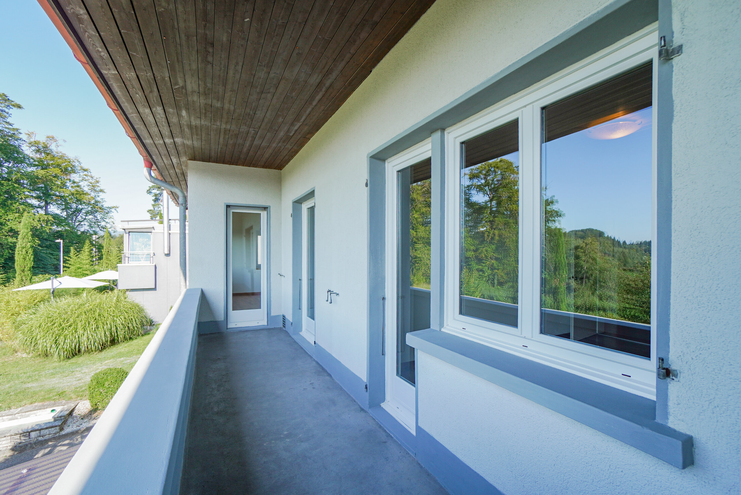 - Balkon: Vom Wohnzimmer und zwei weiteren Zimmern, zugänglicher Balkon mit schöner Fernsicht auf die Berge und das Seeland