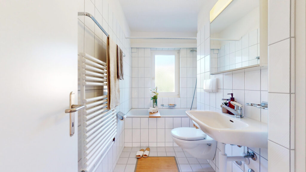 - Nassbereich: Gepflegter Nassbereich mit Bad/WC