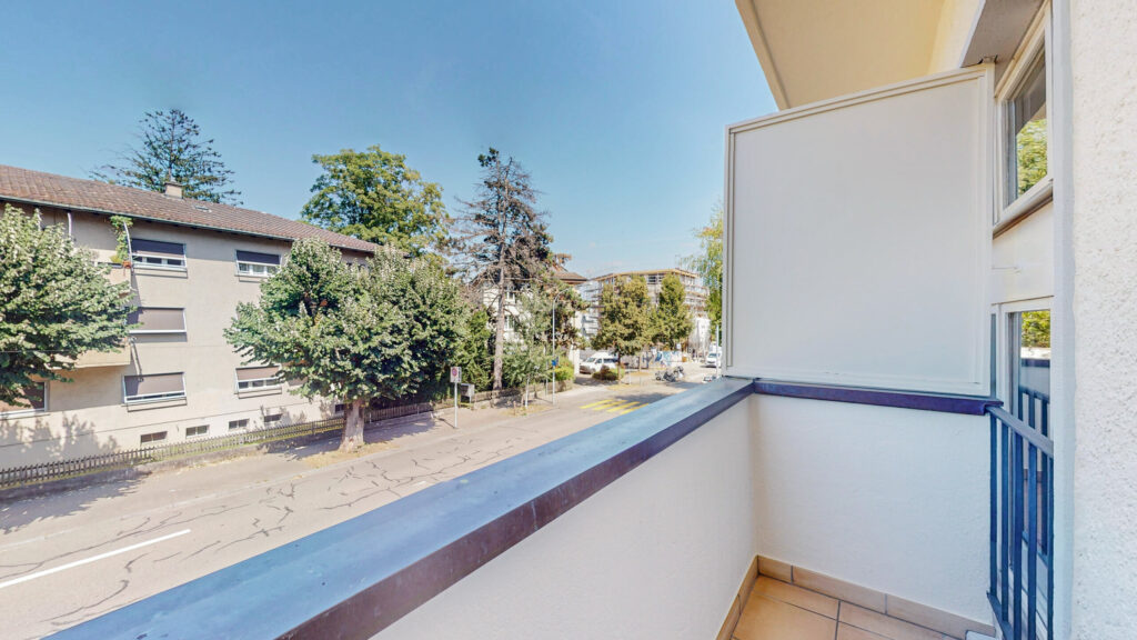Der gepflegte Nassbereich verfügt über ein Bad/WC. Besonders praktisch sind die zwei gedeckten Balkone – einer davon mit Sonnenstore – die zusätzlichen Wohnraum im Freien bieten.