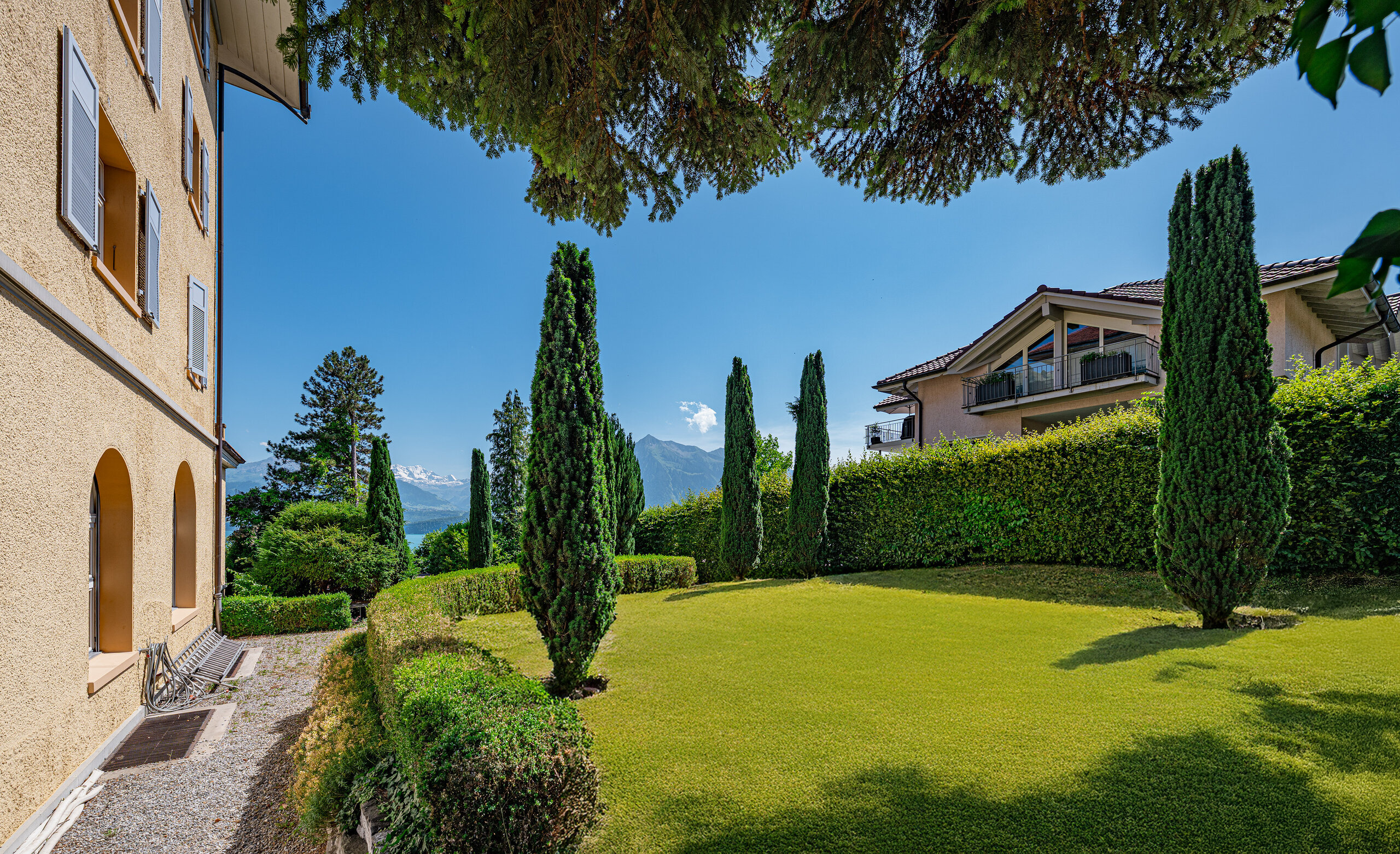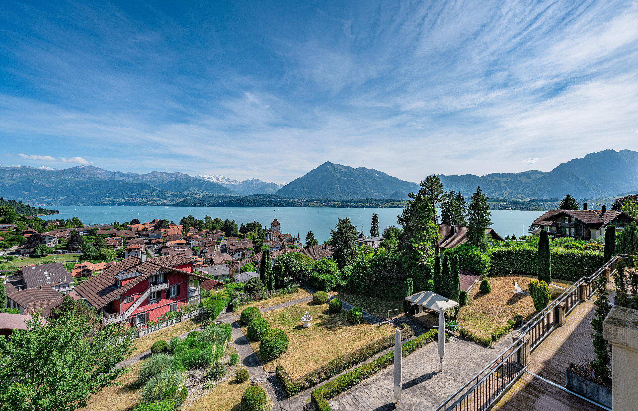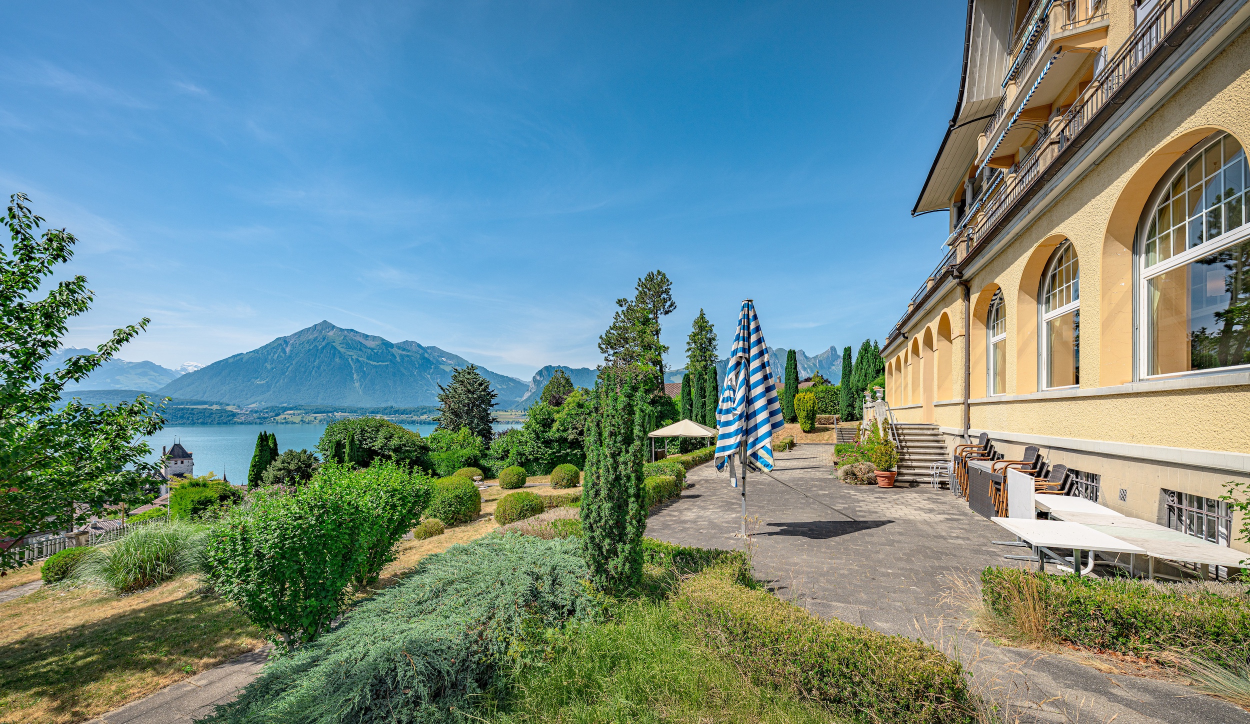 - Aussicht: Exponierte Aussichtslage mit Panoramablick auf den Thunersee und die Berner Alpen