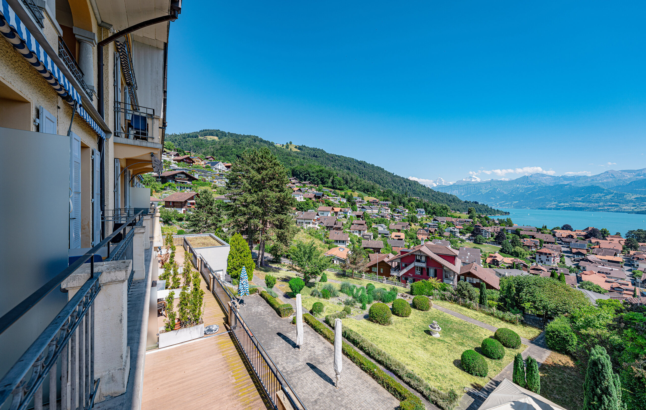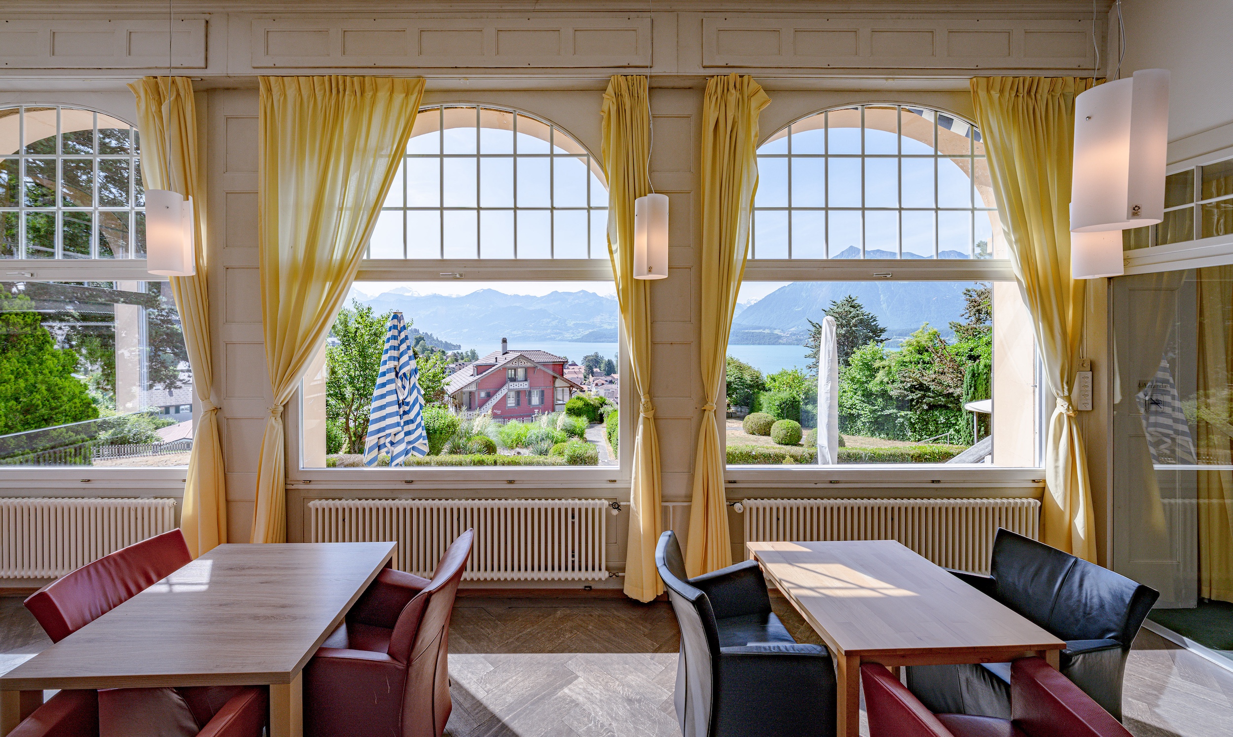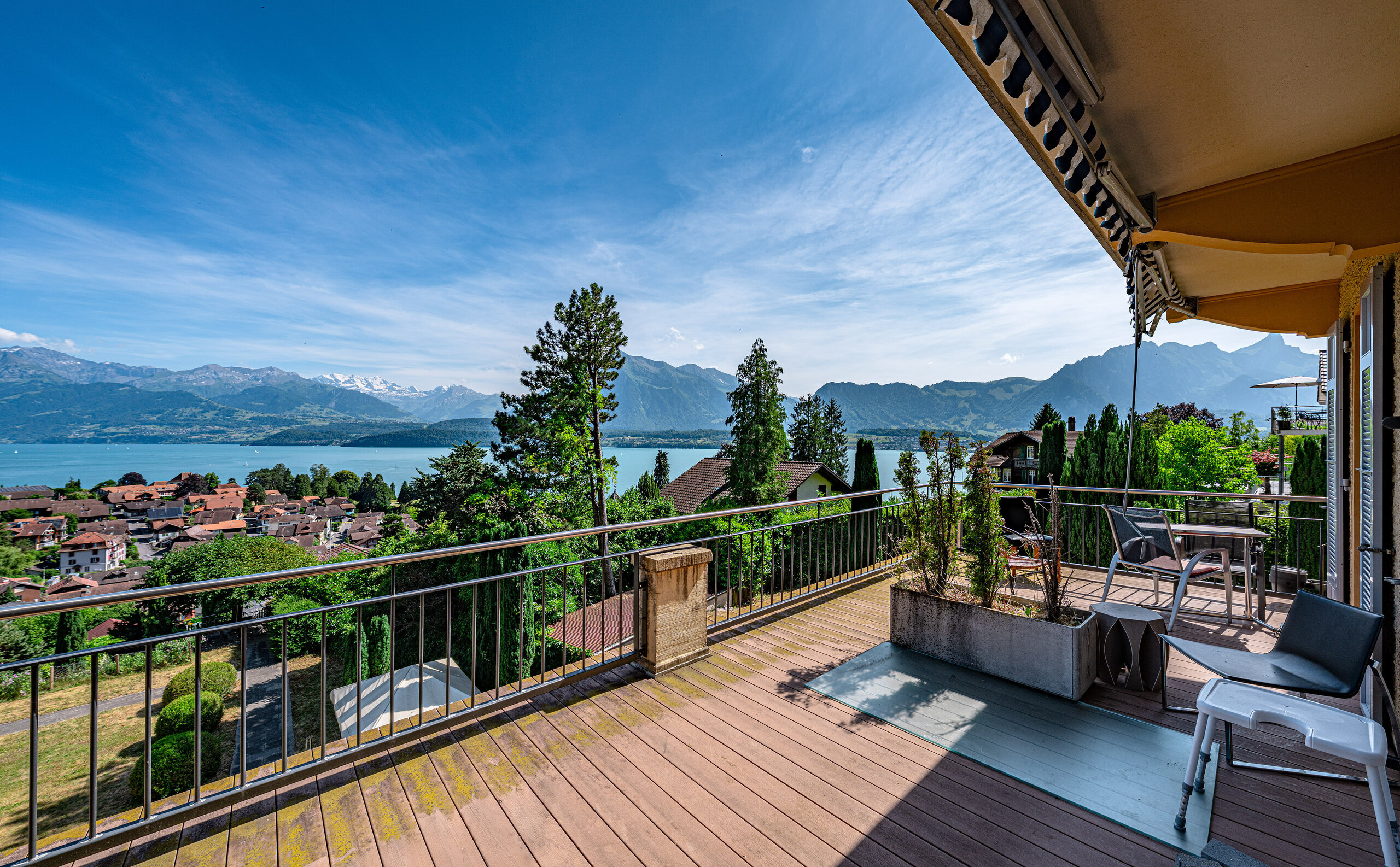 - Aussicht: Exponierte Aussichtslage mit Panoramablick auf den Thunersee und die Berner Alpen