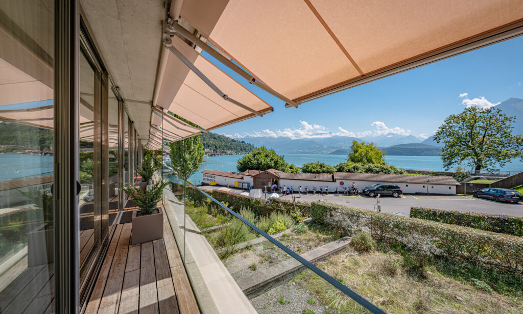 - Grosszügiger gedeckter Balkon: Mit einmaliger Sicht auf den See und die Berge (Niesen, Stockhorn, Jungfrau)