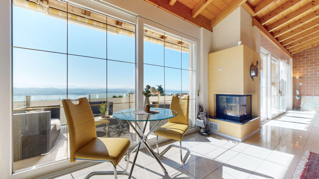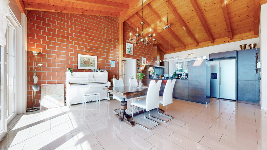 Das Herzstück bildet der 71 m² grosse Wohn- und Essbereich mit Cheminée – lichtdurchflutet, offen gestaltet und mit direktem Zugang zur grossen Terrasse. Die offene Küche mit Foodcenter lässt keine Wünsche offen und ist wie geschaffen für alle, die das Kochen lieben und gerne Gäste empfangen.