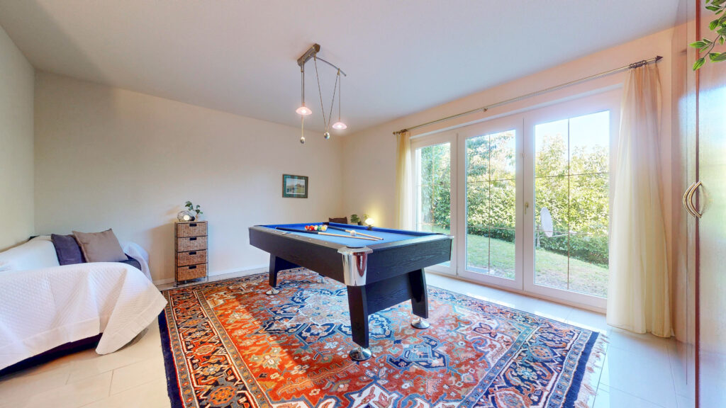 Die Villa verfügt über eine flexible Grundrissgestaltung, die vielfältige Nutzungen ermöglicht: Ob als grosszügiges Einfamilienhaus für mehrere Generationen, als Kombination von Wohnen und Arbeiten oder mit separater Vermietung – hier eröffnen sich zahlreiche Optionen. Im Erdgeschoss befindet sich zudem ein separates 2.5-Zimmer-Studio mit eigener Küche – ideal für Gäste, Familie oder als unabhängige Einheit.