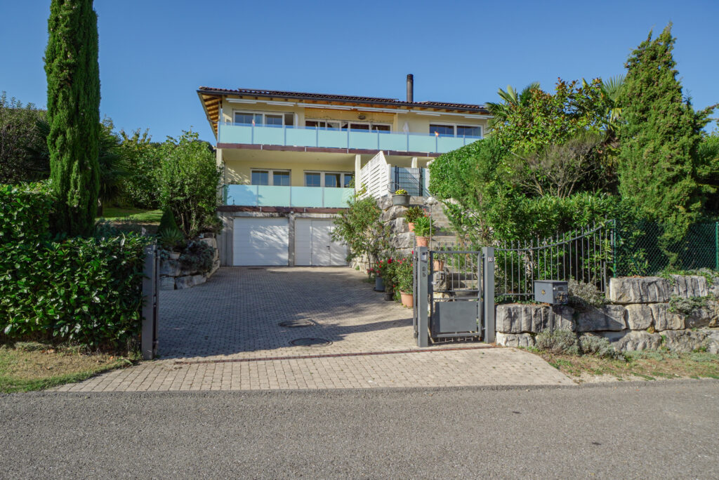 Die grosszügige Parzelle von fast 1’000 m² beeindruckt mit gepflegtem Garten und schönem Baumbestand, darunter Apfel-, Feigen- und Kirschbäume – ein grünes Paradies in bester Hanglage. Eine Doppelgarage sowie mehrere Aussenabstellplätze bieten ausreichend Platz für Fahrzeuge und Besucher.