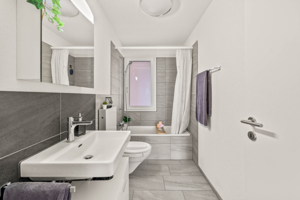 Zwei komfortable Schlafzimmer und ein zusätzliches Büro- oder Gästezimmer schaffen flexible Wohnmöglichkeiten. Für den Komfort im Alltag sorgen zwei Nassbereiche: ein Badezimmer mit Badewanne/WC sowie ein separates Bad mit Dusche/WC.