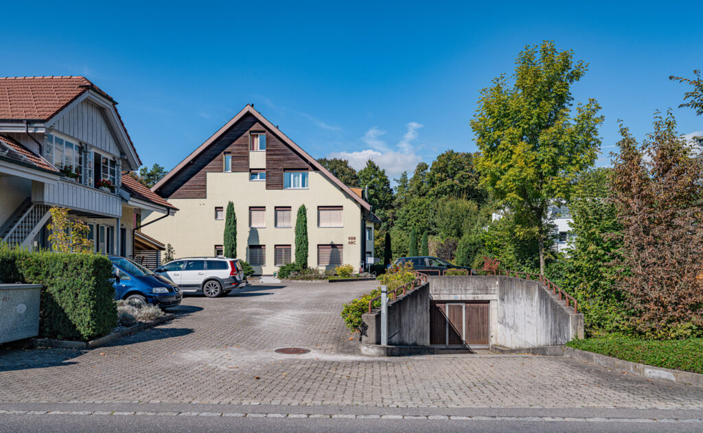 Zwei Badezimmer sorgen für zusätzlichen Komfort und Funktionalität – ideal für Familien oder Wohngemeinschaften. Der gepflegte Gartenbereich und die kinderfreundliche Umgebung machen die Wohnung besonders attraktiv für Familien. Ein Einstellhallenplatz garantiert sicheres und bequemes Parken direkt im Haus.