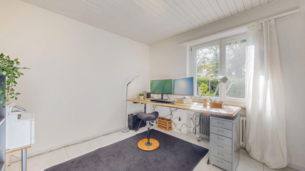 Die Wohnfläche von rund 118 m² ist optimal genutzt, während die Gesamtnutzfläche von 165 m² zusätzlichen Freiraum schafft. Der heute als Tankraum genutzte Bereich ist bereits in die Wohnfläche integriert und lässt sich bei Bedarf problemlos in ein fünftes Zimmer umwandeln – perfekt für ein Homeoffice oder Gästezimmer.