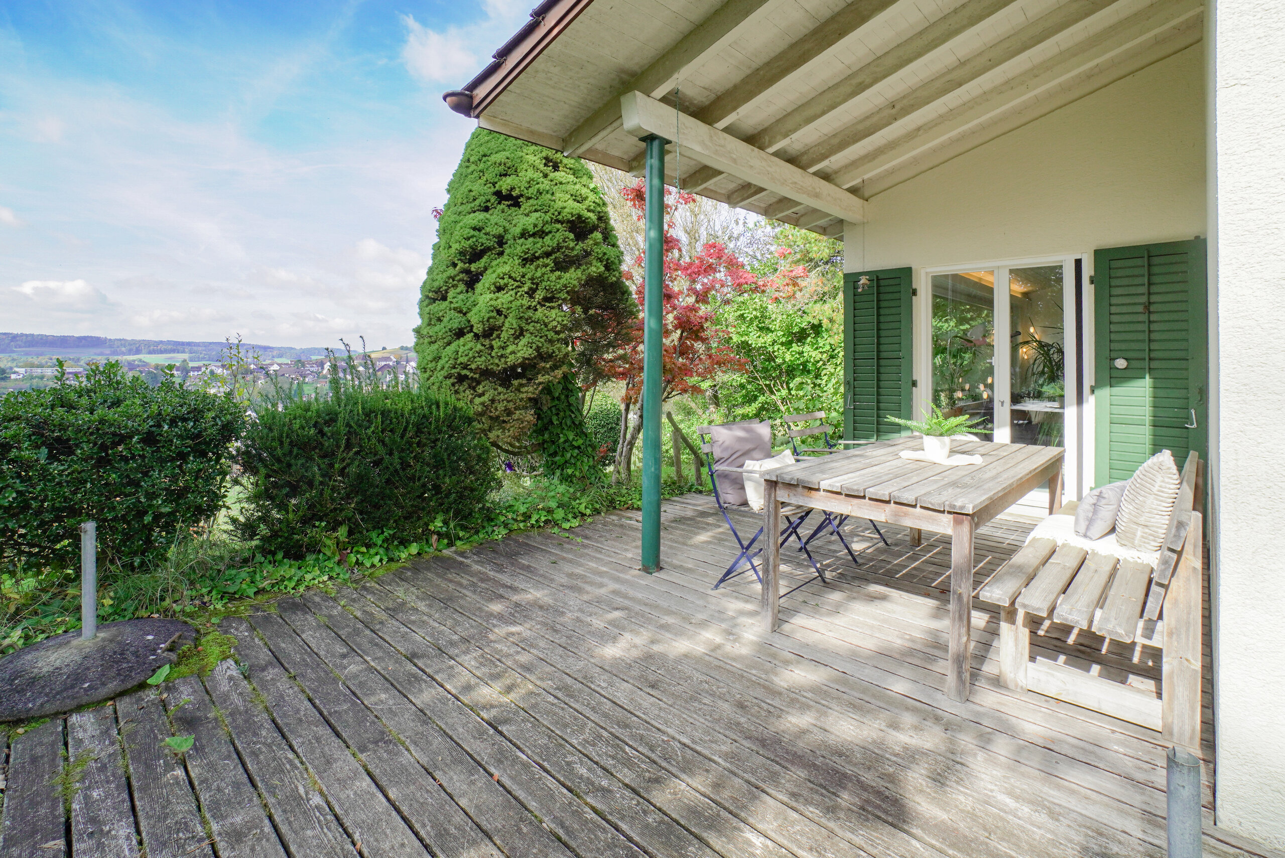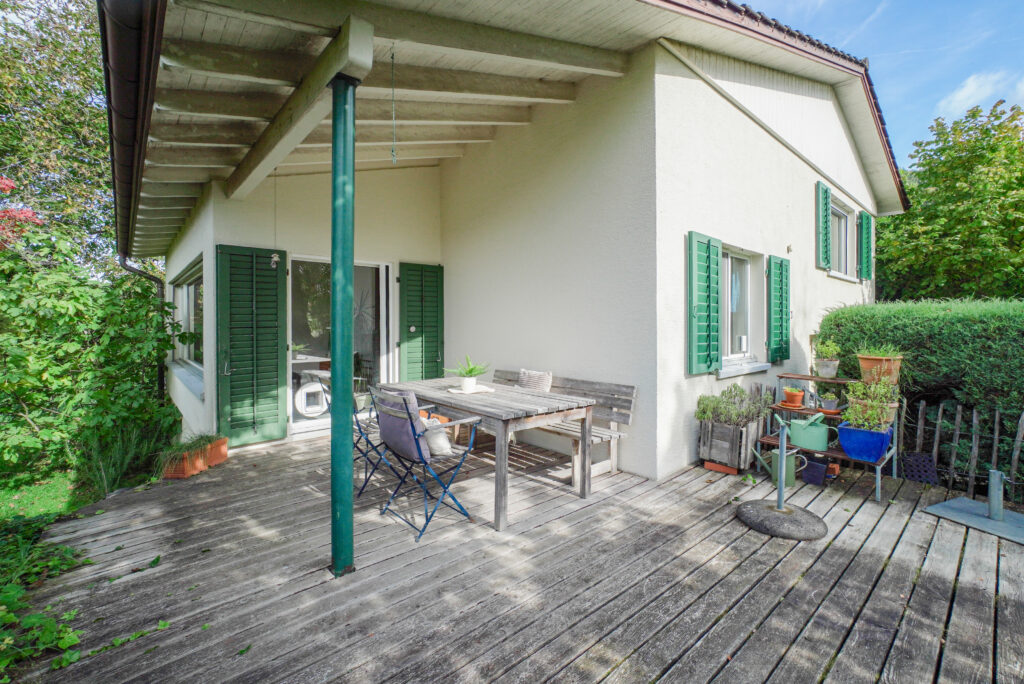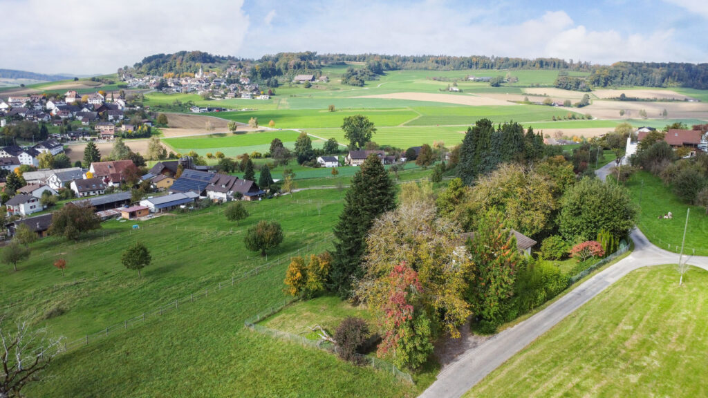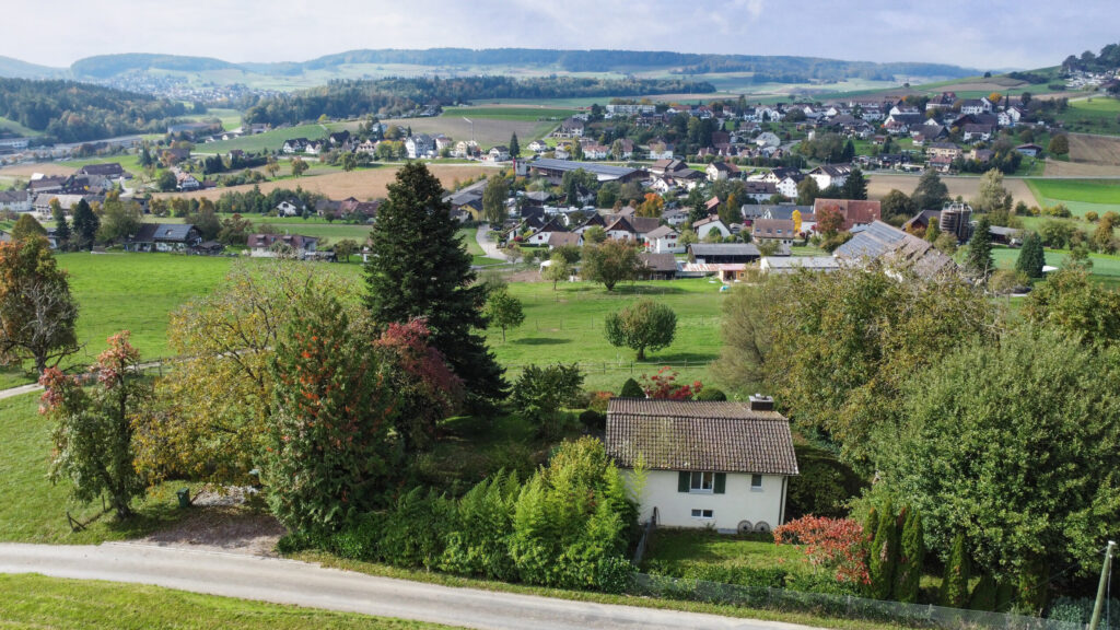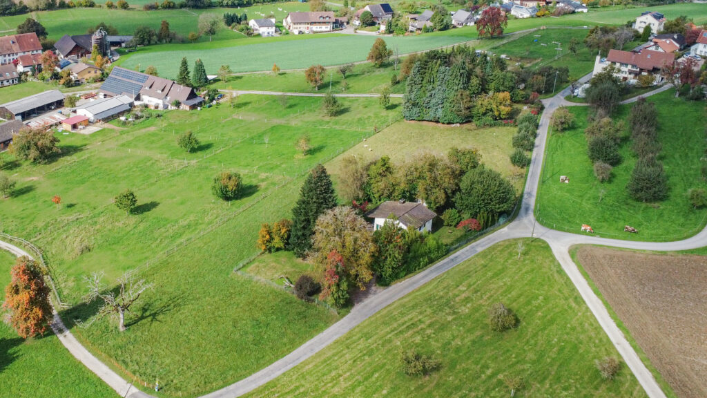 Im Aussenbereich lädt ein grosser, gedeckter Gartensitzplatz zum Entspannen ein. Die beeindruckende Parzelle von 1'838 m² eröffnet vielfältige Nutzungsmöglichkeiten – ob für Tierliebhaber, Gärtner oder einfach als ruhige Rückzugsoase.