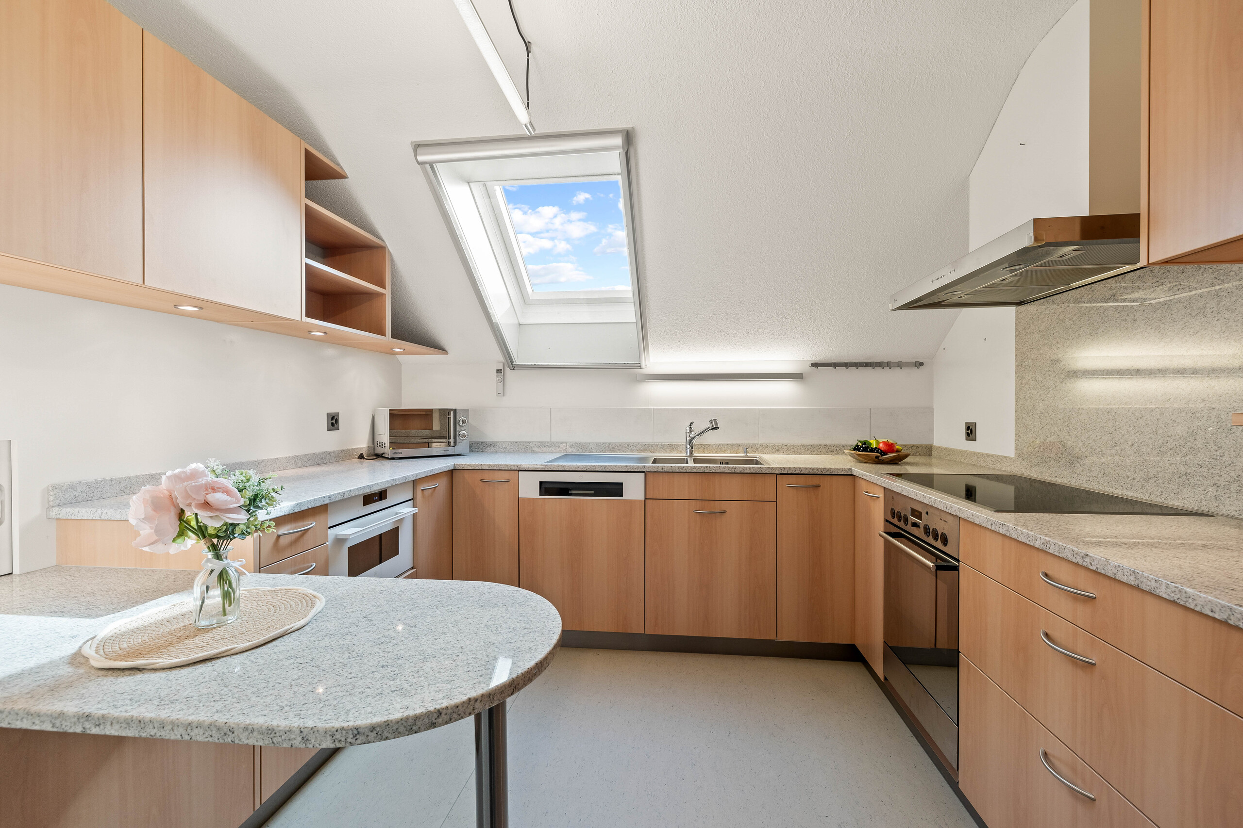 - Optionen im Dachgeschoss: Entweder separate Nutzung des Studios oder Erweiterung der Wohnung auf 3.5 Zimmer