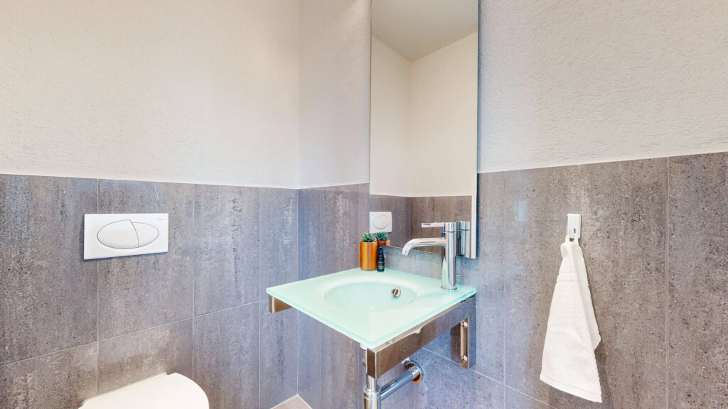 - Grosser Komfort: Sehr grosses Badezimmer mit Wellness- Badewanne, Dusche und WC sowie Gäste WC