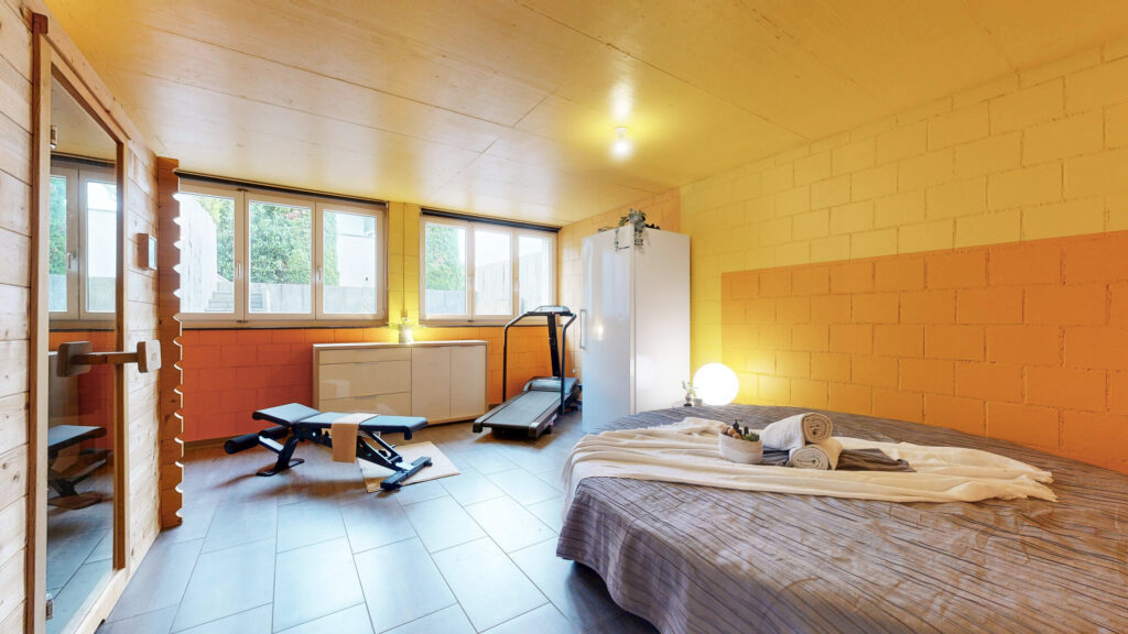 - Für Gesundheitsfanatiker: Fitnessraum mit Sauna und Dusche