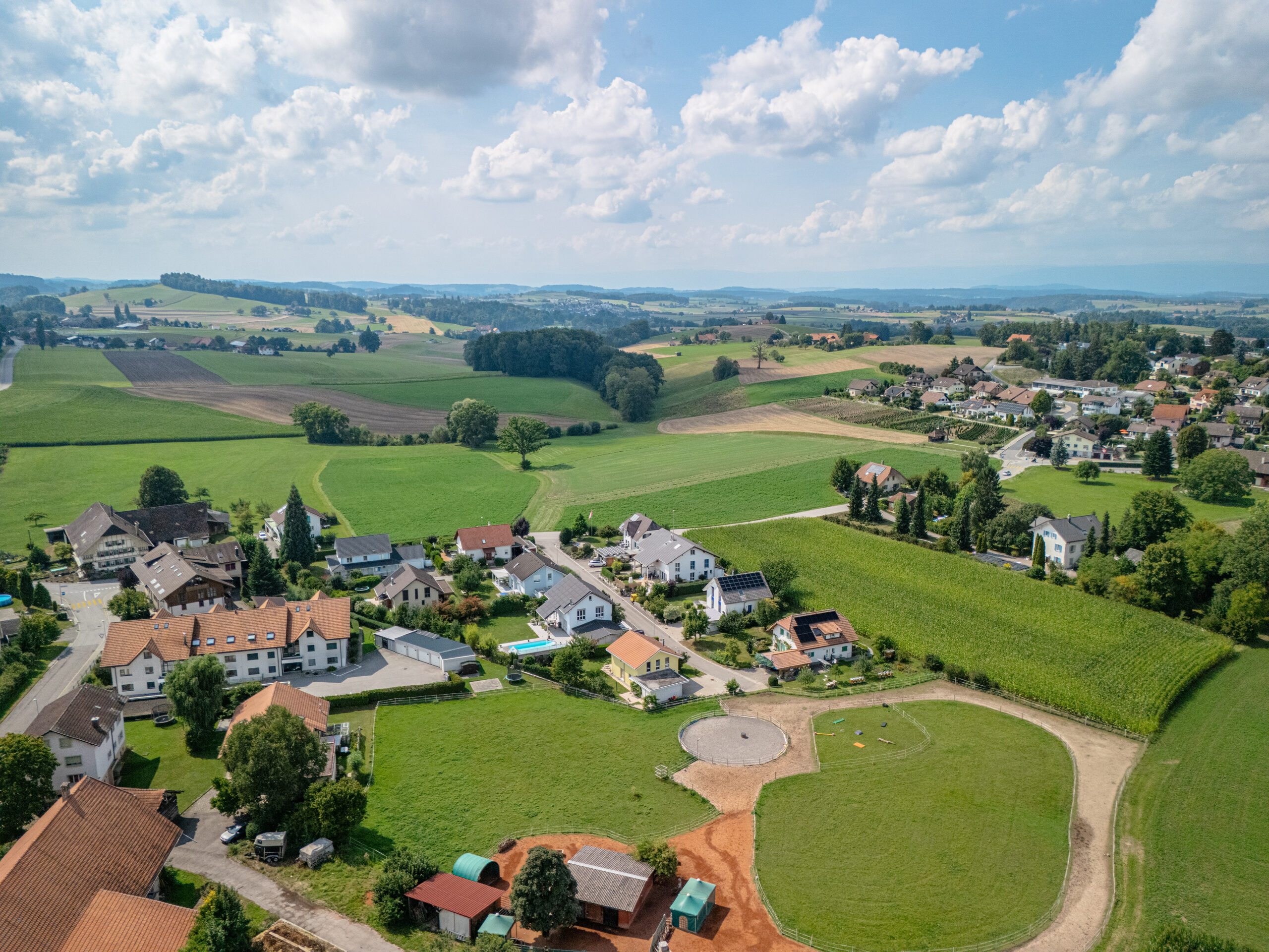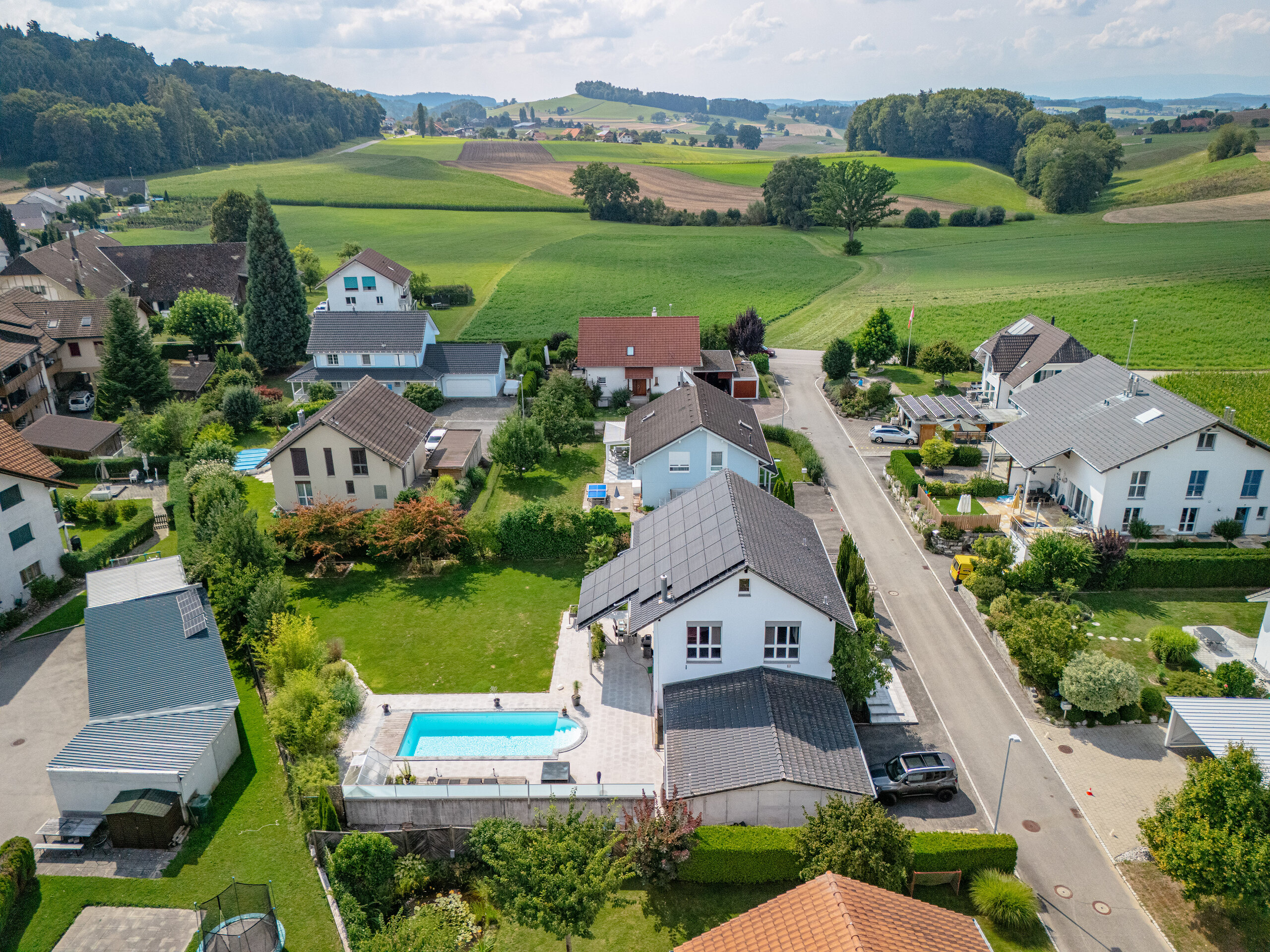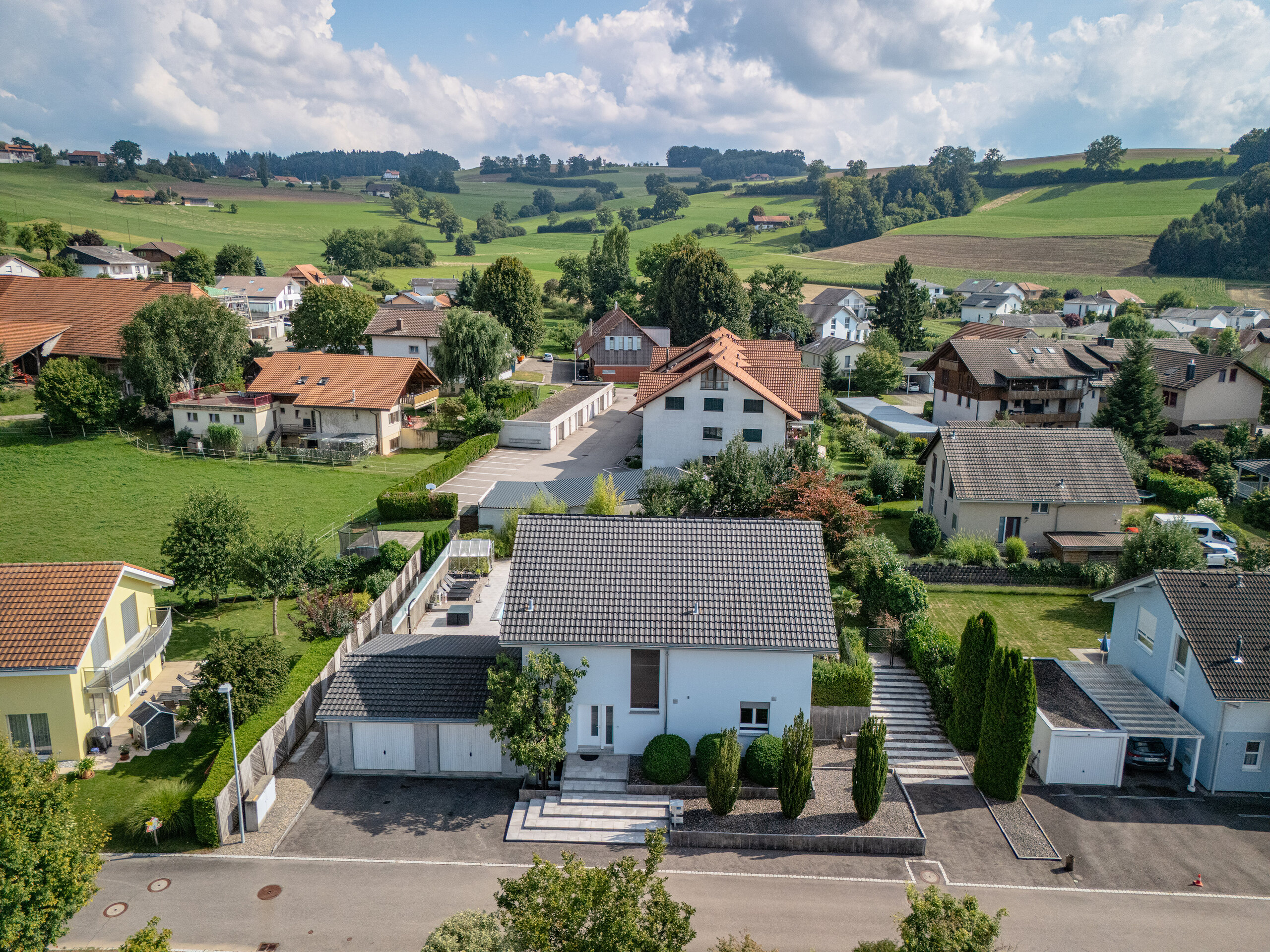 beschauchlichen Ueberstorf verkaufen wir an ruhiger Quartierlage eine moderne Villa mitten im Grünen.