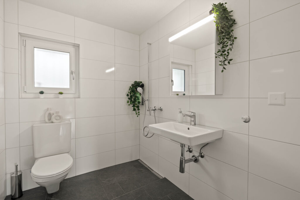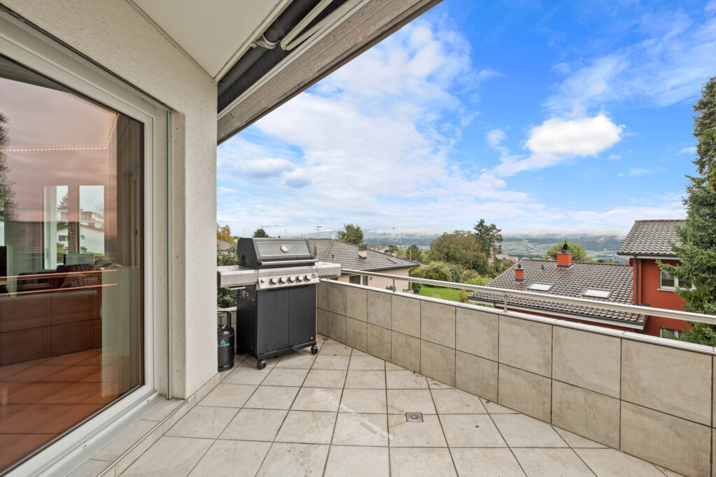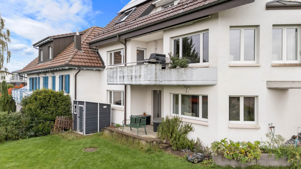 Der Aussenbereich punktet mit einer sonnigen Terrasse und einem Balkon, die zum Entspannen im Freien einladen. Eine effiziente Wärmepumpenheizung sorgt für zeitgemässen Energieverbrauch, während ein separates Estrichabteil zusätzlichen Stauraum bietet.