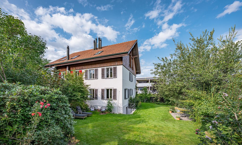 In Kräiligen verkaufen wir ein freistehendes 5.5-Zimmer-Einfamilienhaus mit 229 m² Gesamtnutzfläche und vielen Extras. Offener Wohn-, Koch- und Essbereich, Wintergarten, Nassbereich mit Dusche/WC, zusätzl. WC im UG. Grosser Garten mit Swimmingpool, Rasenfläche, Bäumen und Gemüsegarten. Garage, Carport und vier Aussenstellplätze vorhanden.