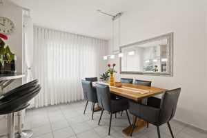 In Niederneunforn verkaufen wir eine gepflegte, barrierefreie 3.5-Zimmer-Gartenwohnung mit 98 m² Wohnfläche. Grosszügiger Wohnbereich mit Schwedenofen, hochwertige Böden, zwei grosse Nassbereiche mit Bad/WC und Dusche/WC (inkl. Waschturm). Gedeckter Gartensitzplatz, Fitnessraum im Haus und ein Garagenplatz im Preis inbegriffen.