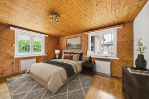 Freistehendes 6.5-Zimmer-Holzhaus in Hünenberg See mit 182 m², Kachelofen, beheiztem Wintergarten, zwei Balkonen, Keller, Carport und zwei Aussenparkplätzen – charmant und direkt am Zugersee.