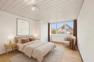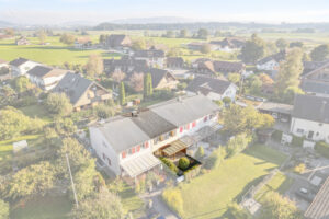 Diese elegante Dachwohnung bietet 114 m² Wohnfläche, einen hellen Wohnbereich mit Schwedenofen, einen gedeckten Balkon mit Blumenbeet sowie zwei Nasszellen (Bad/WC mit Dusche und Gäste-WC). Dank Sanierungen 2020/2022 (Bad, Küchengeräte, Wärmepumpe) präsentiert sich die Wohnung in gepflegtem Zustand. Wärmepumpe, Bodenheizung, Keller, Abstellraum und Velokeller runden das Angebot ab. Zwei Einstellhallenplätze können für je CHF 30’000.– dazu gekauft werden. Ruhige Lage mit optimaler Anbindung nach Bern, Zürich und Basel.