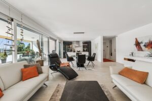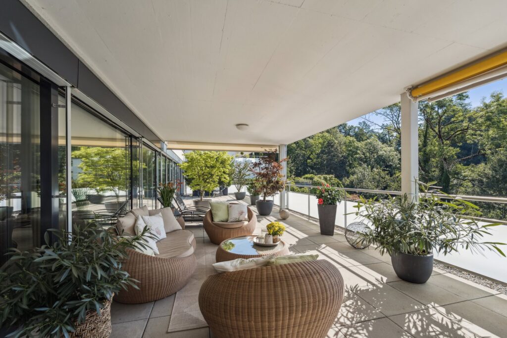 Grosszügige 218 m² Dachwohnung mit 4.5–5.5 Zimmern, Cheminée, modern ausgestatteter Küche und Wellness-Bad.