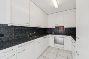 86 m² Wohnfläche, moderner Ausbau, Balkon mit seitlichem Seeblick, V-Zug Küche, zwei frisch renovierte Nasszellen, edles Eichenparkett. Parkplätze mit E-Ladestationen mietbar.