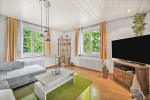 Praktische Nebenräume inkl. Naturkeller, Waschküche und Technikraum. Doppelgarage, ruhige Mikrolage nahe ÖV, Einkauf und Autobahnanschluss. Ein gepflegtes Haus mit Charme und Ausbaupotenzial.