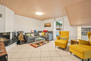 Grosszügiger Wohn-/Essbereich mit Cheminée, drei Terrassen mit Weitsicht, drei Nassbereiche, grosser Estrich mit Ausbaupotenzial. Zwei Einstellhallenplätze optional.
