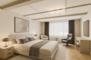 Exklusives Hotelzimmer im 16. Stock des Hotel Mona in Montreux – direkt am Genfersee. Modernes Zimmer mit Bad/WC, Balkon mit Seesicht, professionelles Hotelmanagement und attraktive Eigennutzervorteile