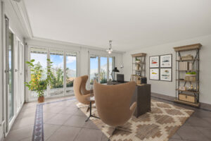 Charmante Villa mit 272 m² Wohnfläche in den Schweizer Weinbergen. Grosszügige Wohnbereiche mit Kamin, Esszimmer mit Terrassenzugang, Weinkeller, Sauna, Fitness, Yoga-Raum sowie überdachter Balkon mit Panoramablick. Zwei gedeckte Parkplätze und drei Aussenstellplätze inklusive
