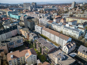2’264 m² Gewerbefläche, 5 Etagen, 4 Büroeinheiten, 162 m² Attika-Terrasse, 28 Parkplätze. Zentrale Lage, nur 10 Min. zum HB. Neubau-Studie für MFH mit 36 Wohnungen (2’745 m² BGF) vorhanden.
