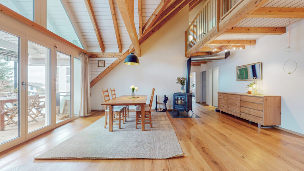 2022 renoviert, Schwedenofen, moderne Miele-Küche, offene Galerie mit sichtbaren Holzbalken, 3 Nassbereiche, sonnige Terrasse, Keller, Reduit & private Waschküche. Zwei Einstellhallenplätze optional.