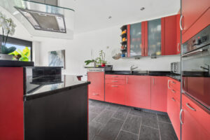 Über 180 m² Wohnfläche, riesiger Wohn-/Essbereich, Küche (2024) mit Markengeräten, moderne Nassbereiche, Fernwärme mit Bodenheizung, 21 m² Terrasse mit Aussicht. Einkauf direkt erreichbar.