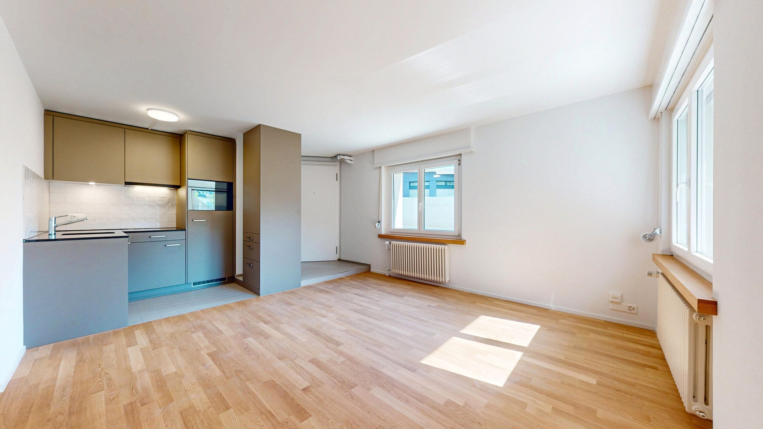 The kitchen offers generous storage space and ample room for a dining table - an ideal meeting place for family and guests. Two elegant wet areas, one with bath/WC and one with shower/WC, round off the offer .