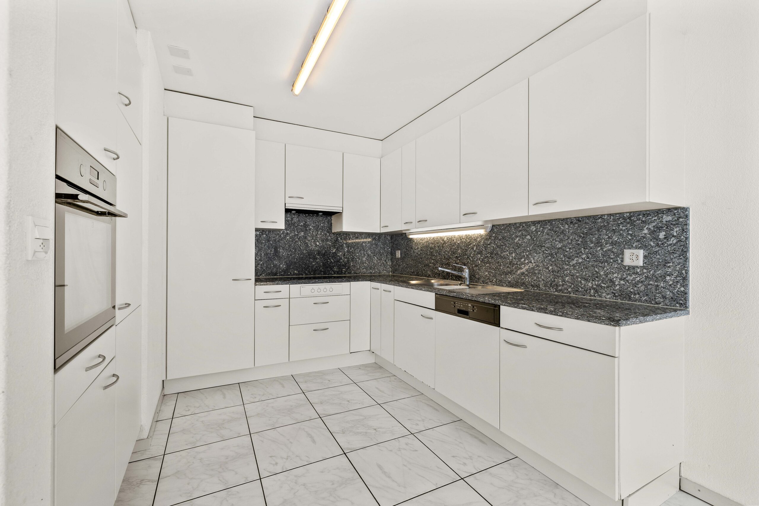 The bright living and dining area impresses with spaciousness and direct access to the balcony.The open kitchen with granite worktop, ample storage space and room for a dining table blends harmoniously into the room concept .