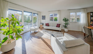 Maintained 3.5-room condominium with 82 m² living space in Dierikon: spacious terrace, cozy conservatory, modern indoor pool and sauna, lift and indoor parking space included.
