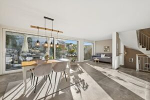 Icona architettonica degli anni 80 a Endingen: 187 m² di superficie abitabile, 7.5 camere, soggiorno su due piani con ballatoio, elegante stufa a trittico, due zone umide, ampio giardino con zona salotto e camino oltre a garage doppio con posti auto esterni.
